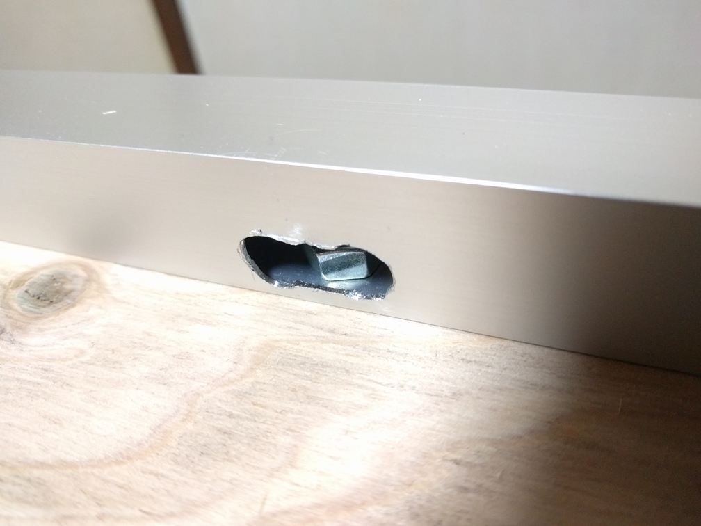 横にあいてる穴は角パイプの中にナットを入れて押さえる為の穴です。