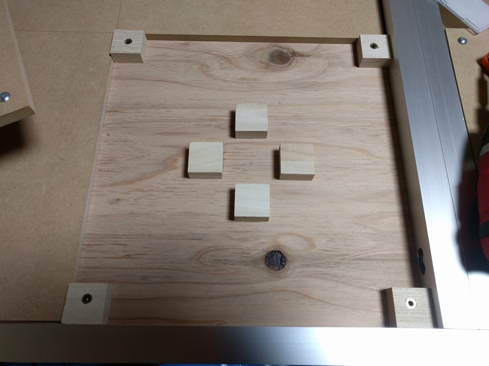 切り出したら底上げ木材に貼り付け。穴開いてるやつはとりあえず乗せただけ。