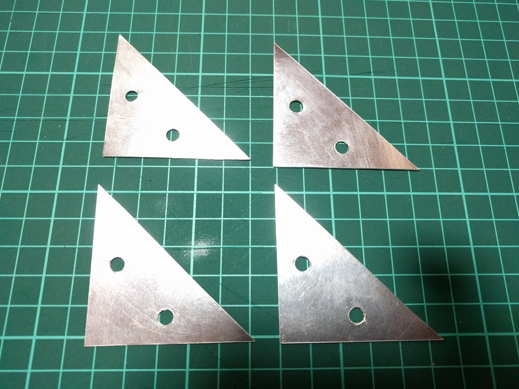 1辺55㎜の2等辺三角形に加工して32個。パネル押さえの金具に使用。