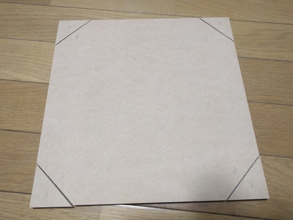 パネル用の9㎜MDF板を端から50㎜で45度でカット。