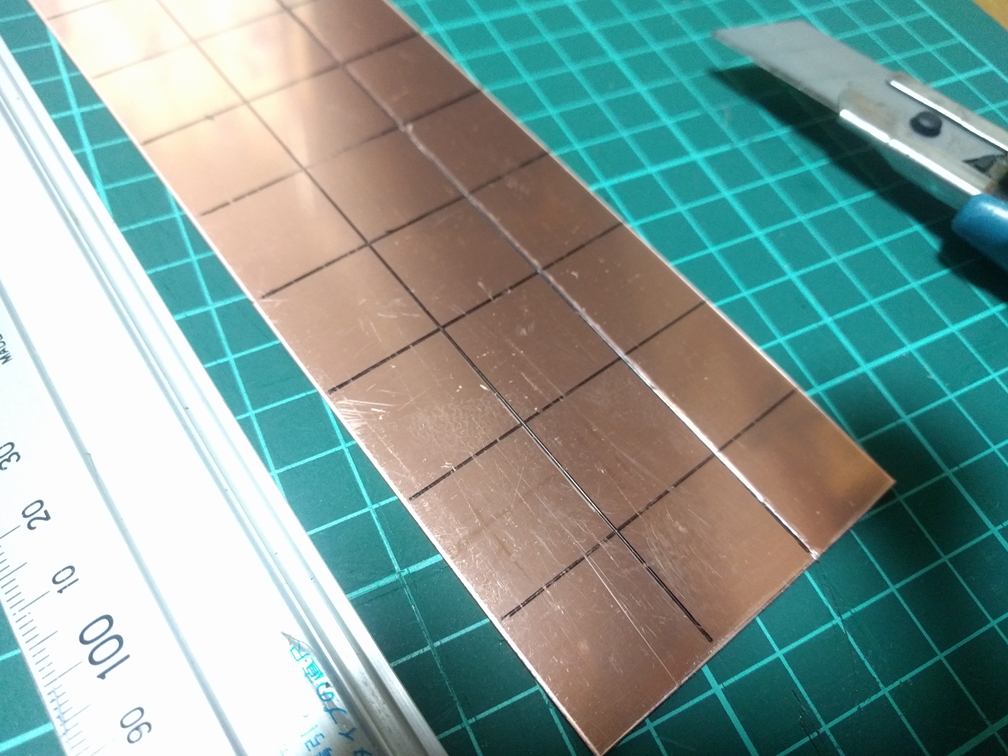 金切りハサミとかでやると一発で切れるけど銅板が曲がってしまうので、多分これが一番早いと思います。