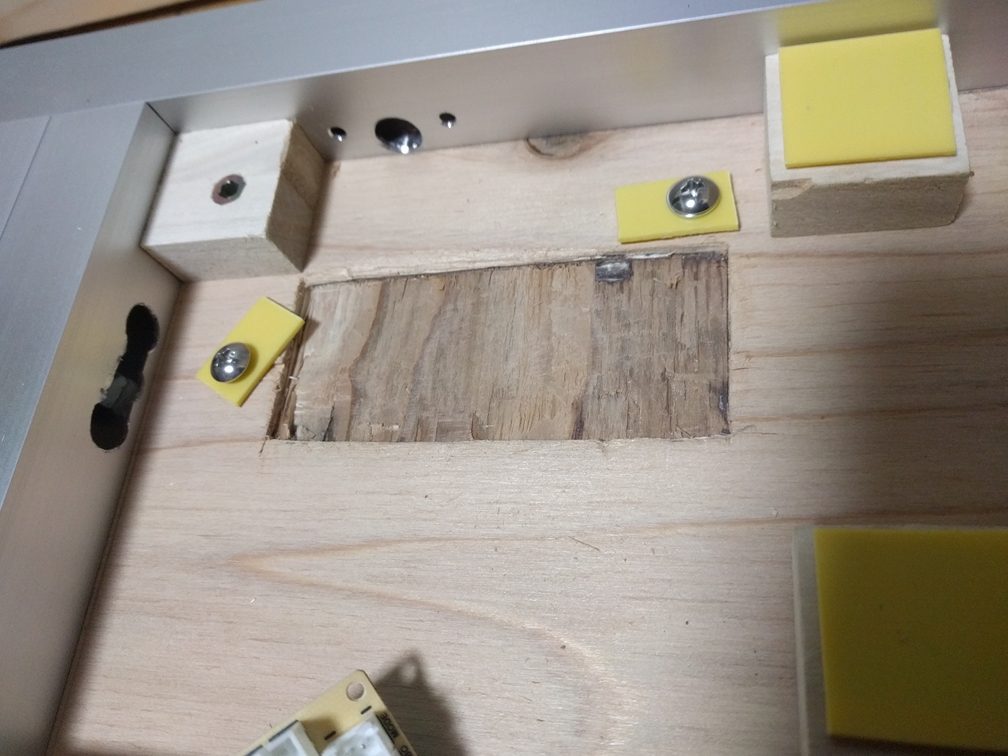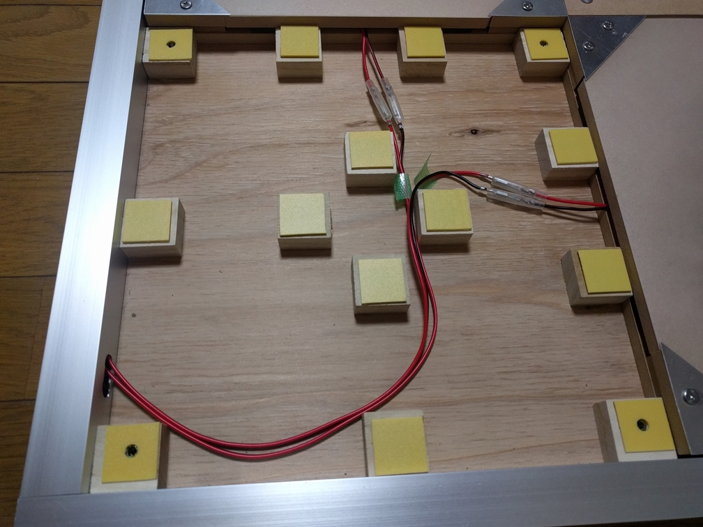 テスト踏みしてたら銀パネ部のMDF板が結構曲がったので、補強に底上げの木材を追加しています。