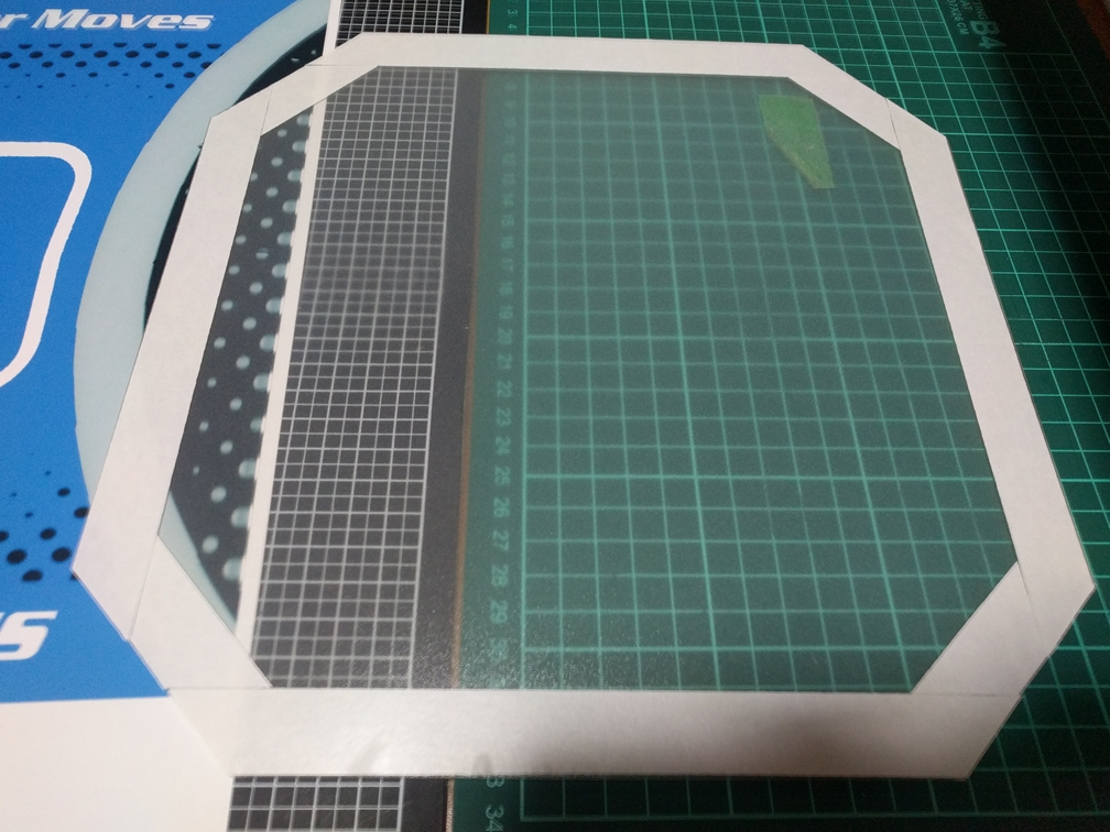 PPシートもパネルに合わせて切っておき、どのパネルと合わせたやつか分かるように養生テープを貼り付けて番号振り分け。向きも分かるように。