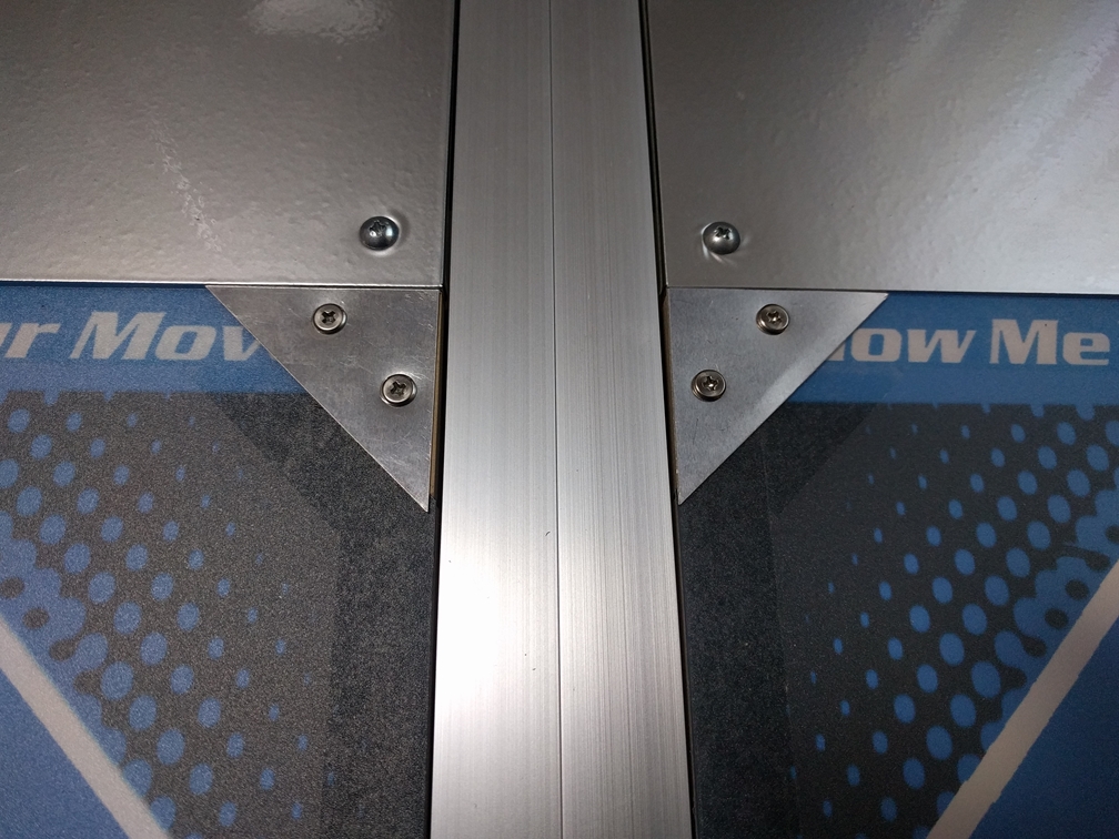 もしこれ以上にパネルを上げたい場合、このままだと押さえ金具が飛び出るので、金具の端を折りこんで引っ掛からないようにする必要があります。
