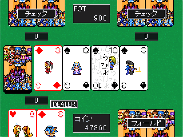 あと、ポーカーに最大100コイン,ブラックジャックに最大1000コインの賭け金を追加しました。